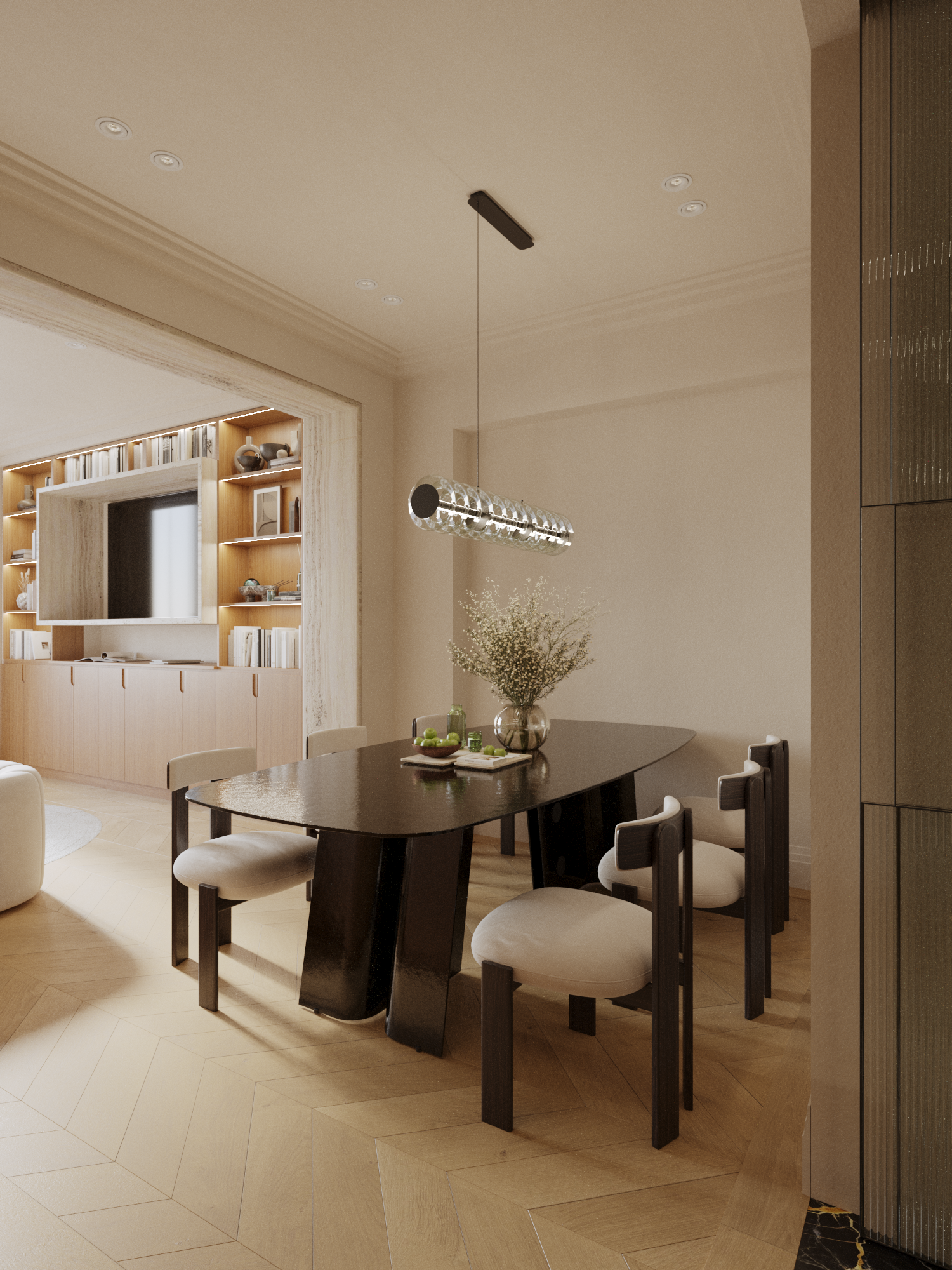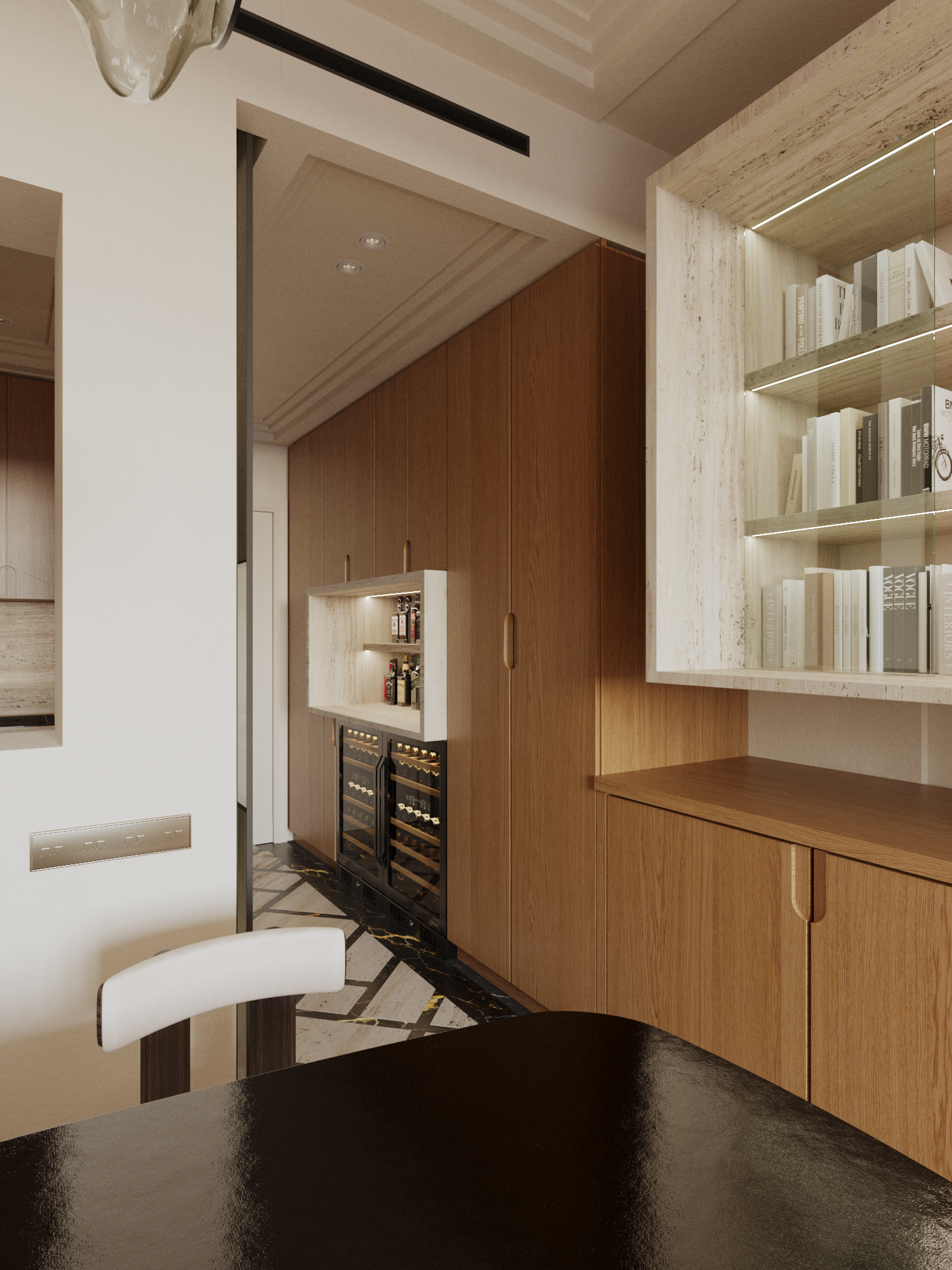 Conception sur mesure, sélection de matériaux nobles et travail précis des volumes viendront structurer cet intérieur en devenir.